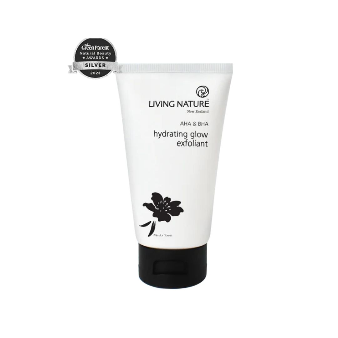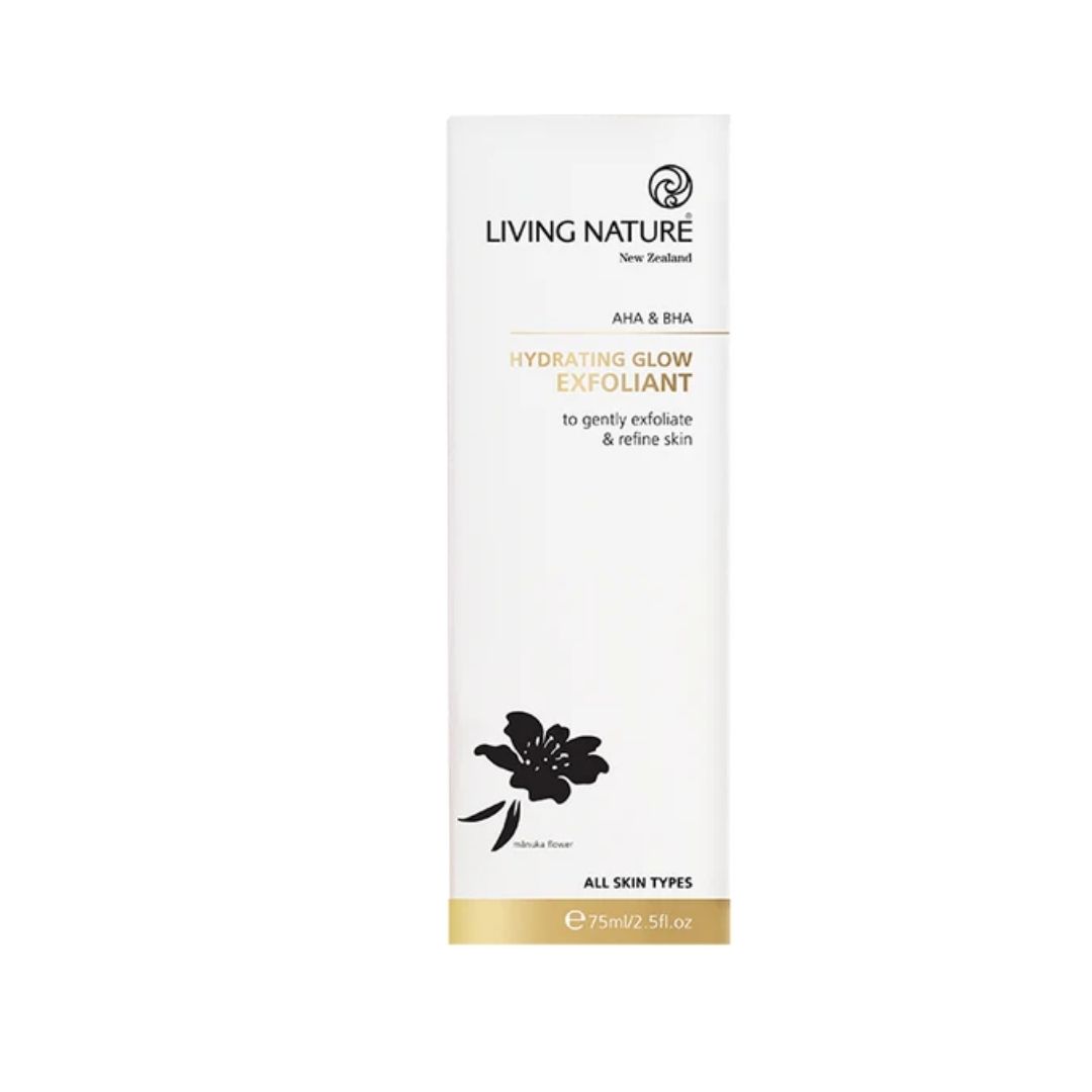 Living Nature’s Hydrating Glow Exfoliant gently exfoliates skin, revealing a radiant, smooth and hydrated complexion.