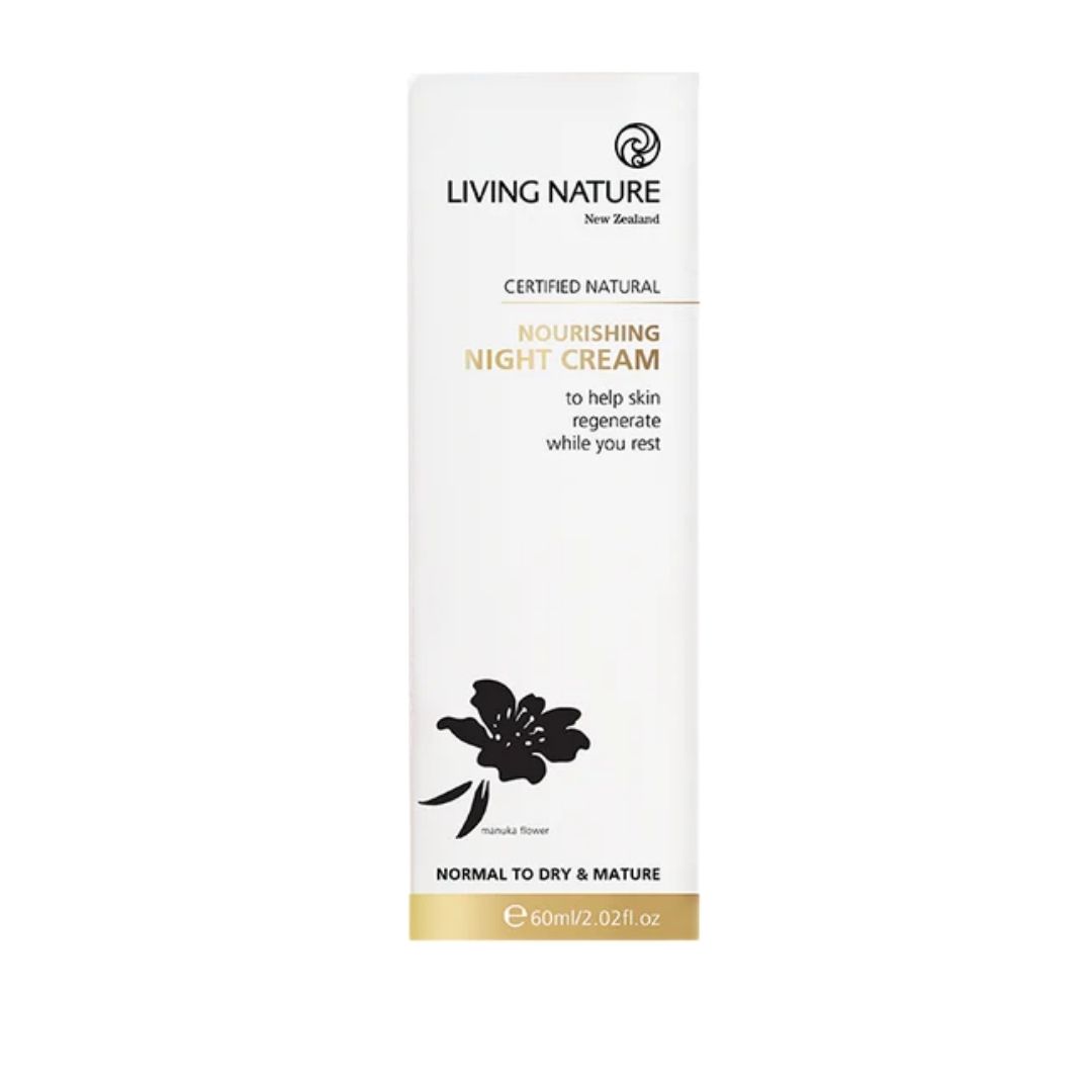 Living Nature’s certified natural Nourishing Night Cream is a nutrient rich moisturizer to deeply hydrate and restore skin while you sleep.
