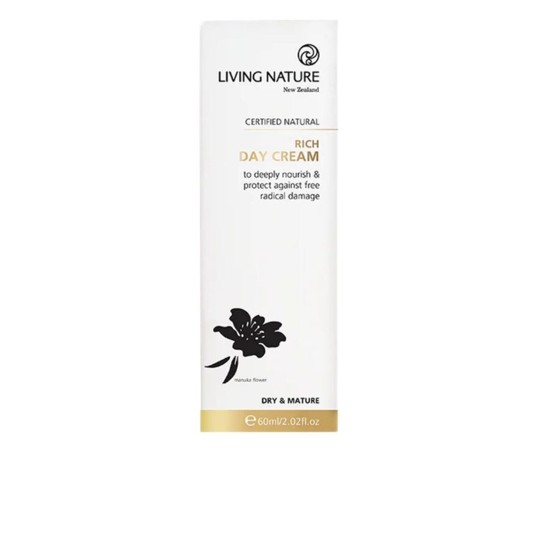 Living Nature’s certified natural Rich Day Cream is a luxuriously rich daily moisturizer to deeply nourish and protect against damaging free radicals.
