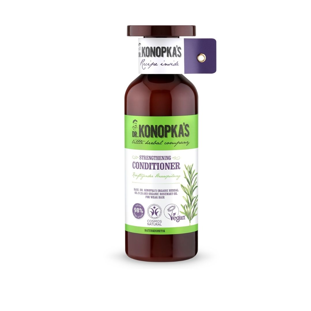 Natural certified Strengthening hair care line contains Dr. Konopka’s N28 special herbal hair oil certified under BDIH COSMOS Natural and organic rosemary oil, which help to make weakened hair elastic, shiny and strong.